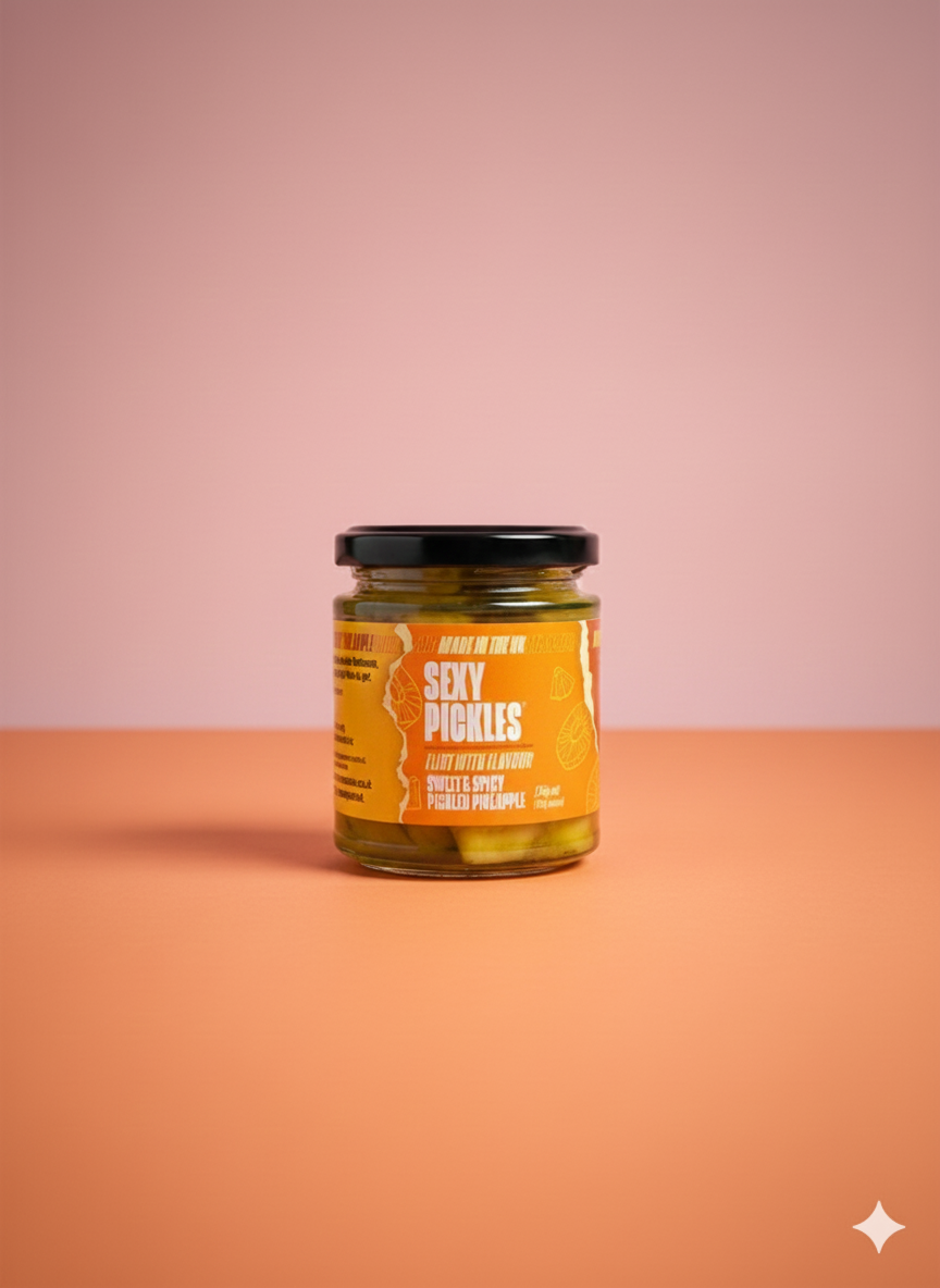 We heard you, and we're here to deliver. Our Sweet and Spicy Pickled Pineapple now comes in a smaller size, similar to our pickled grapes and pickled garlic. Don't worry, they're just as fiery and just as delicious.